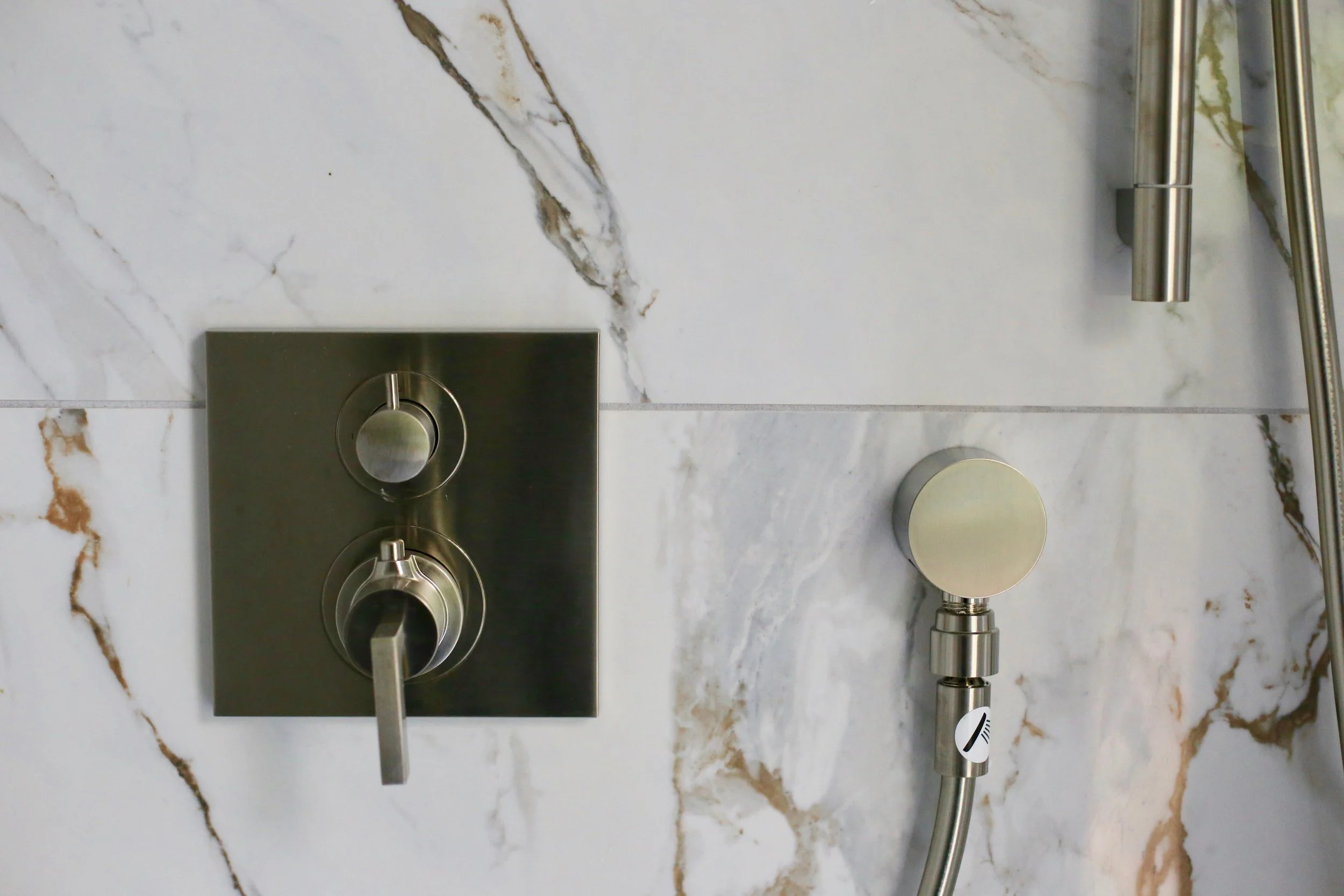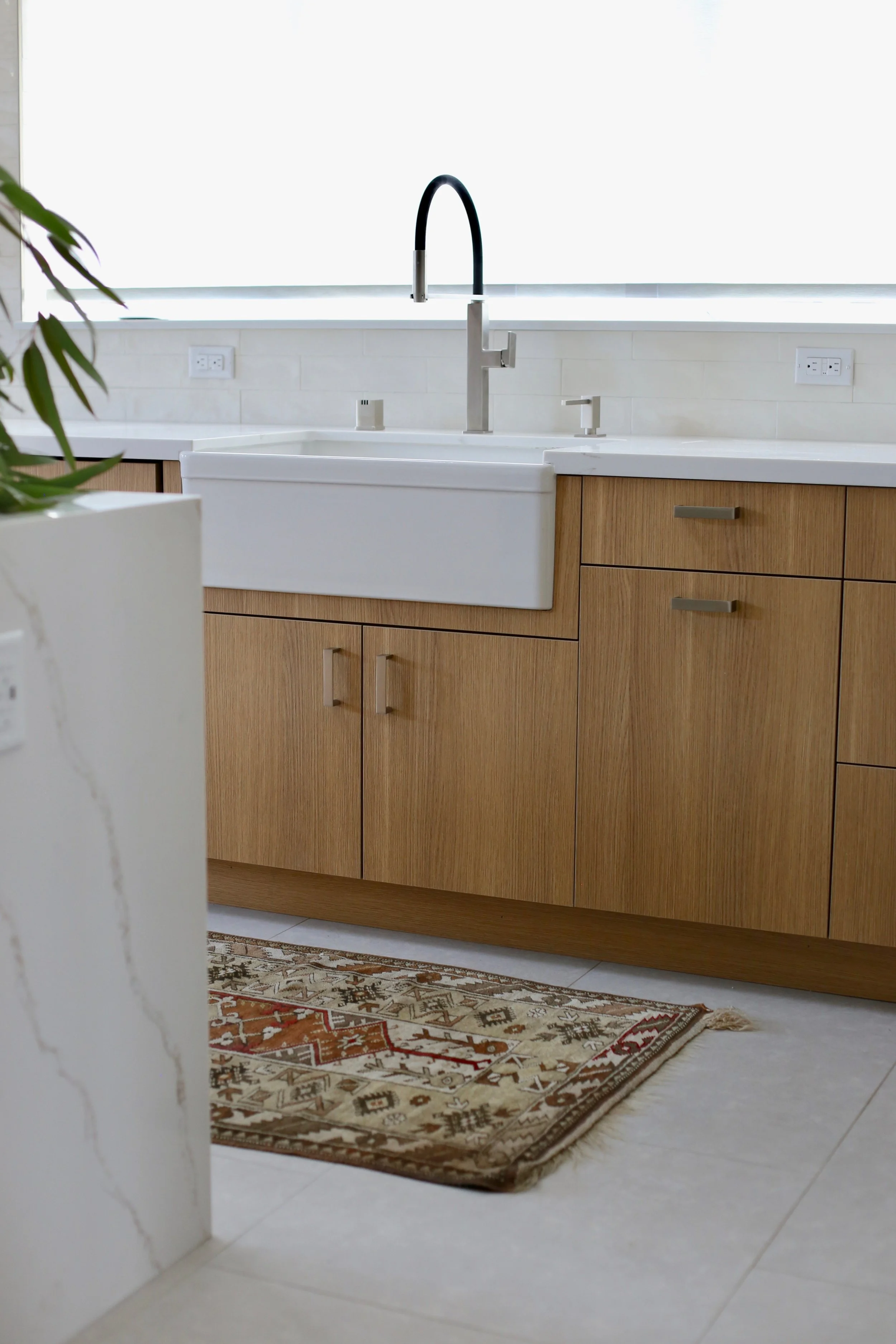 Having focused on neutral tones throughout the space we decided to add a pop of color with the faucets we chose. The kitchen sports a cobalt blue one, while the bathrooms…stay tuned.