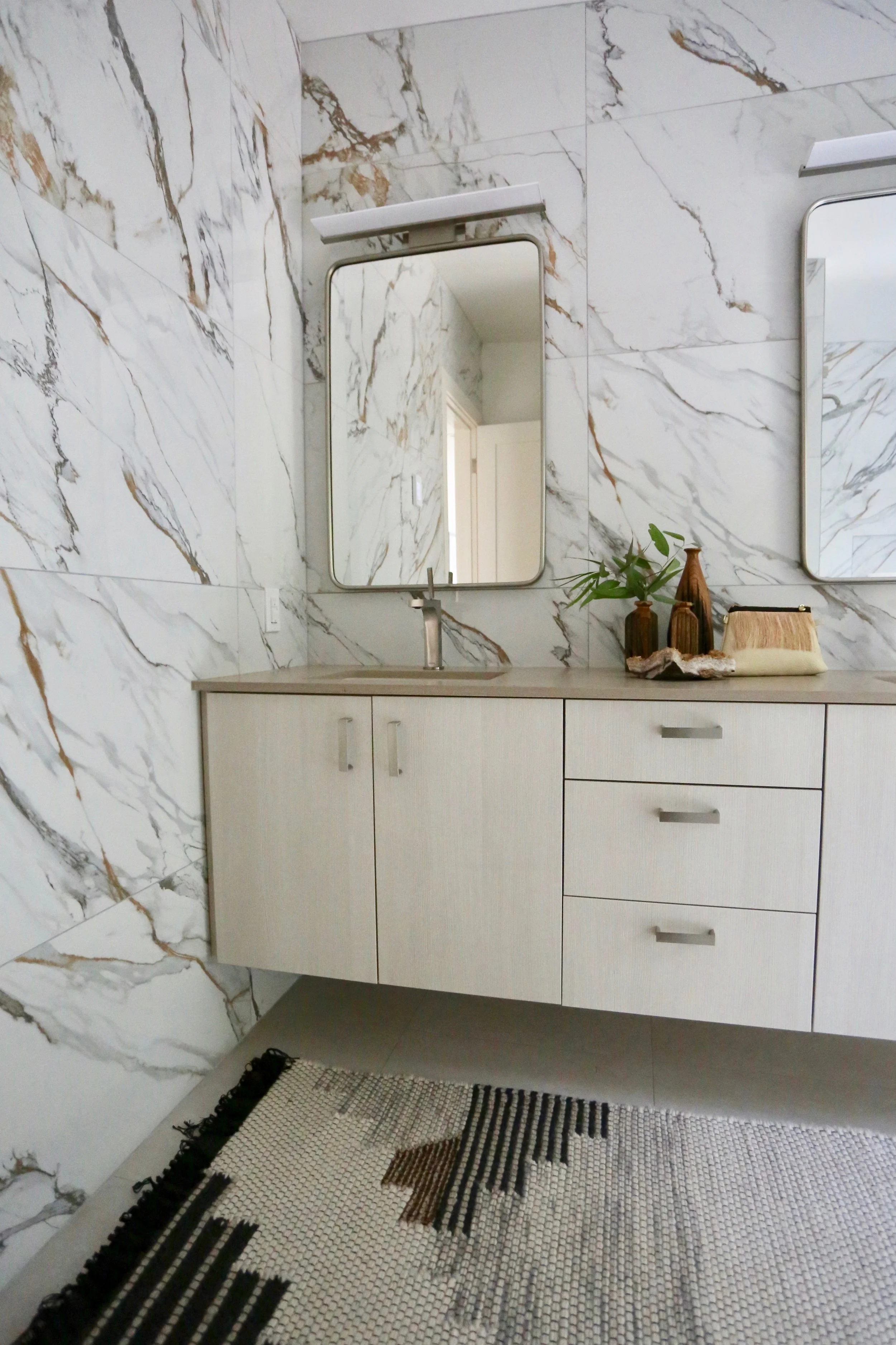 By incorporating texture, earth tones and organic patterns into the marble, tile, cabinetry and flooring choices, both houses acquired an inviting, yet distinctively elegant ambience. One which I hope will elevate and enhance any lucky family’s lifestyle