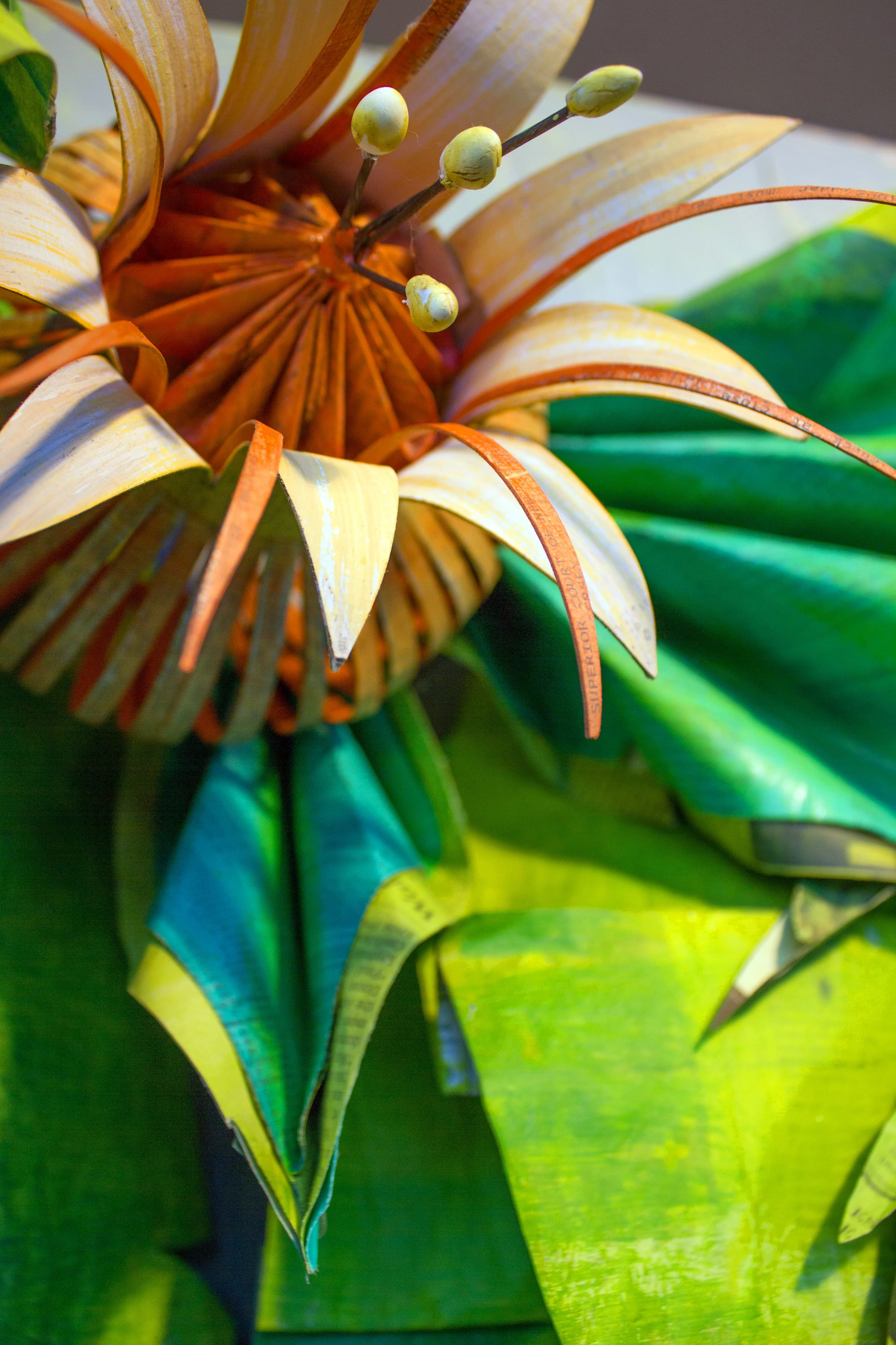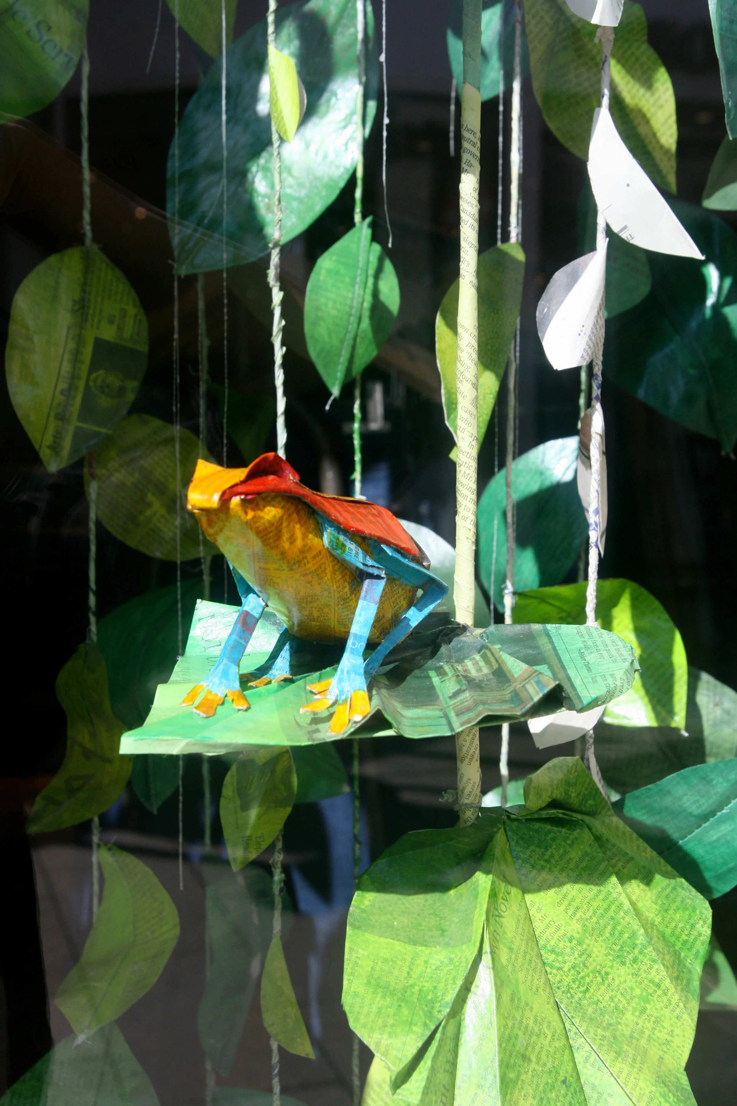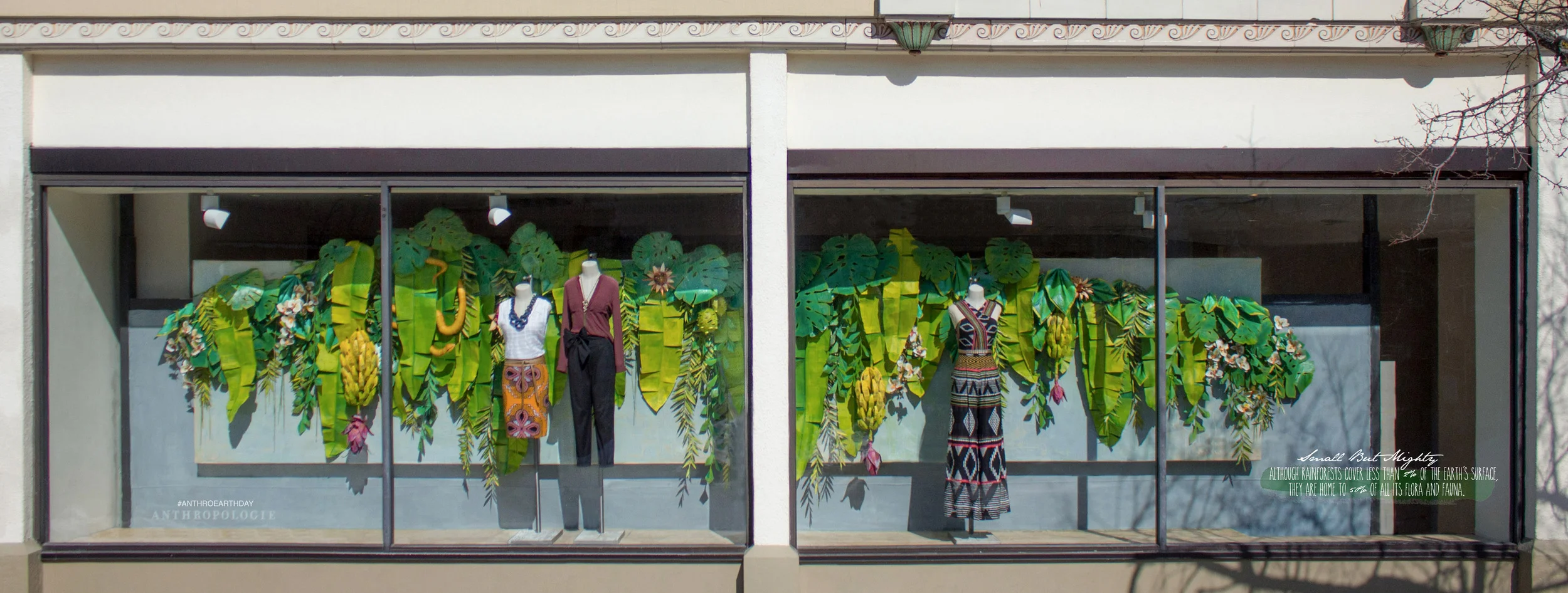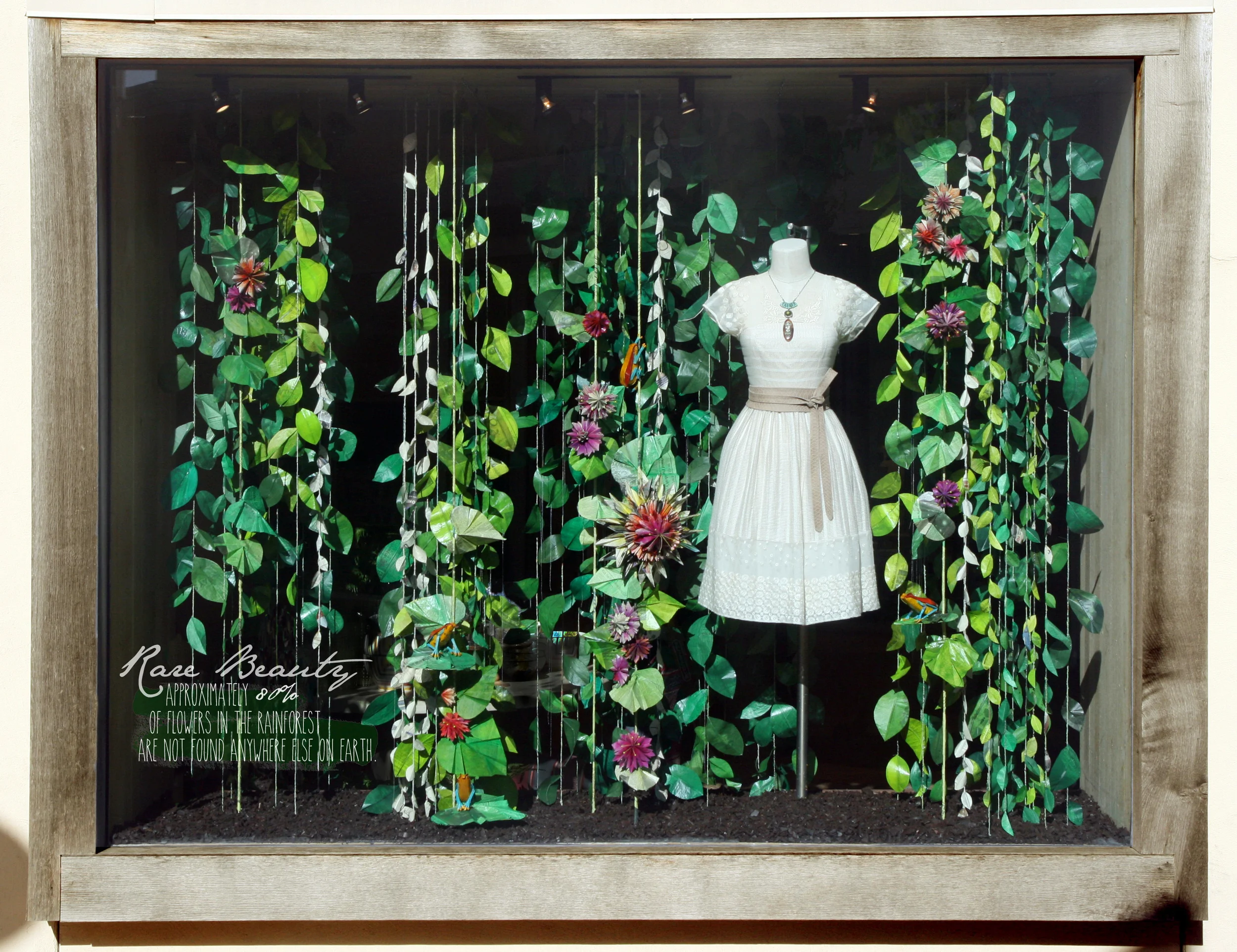 Last week, I went into Anthropologie in Berkeley and was greeted by a visual team member seated at a long table covered with cut and colored pieces of newspaper. A closer look revealed that each piece represented a leaf. She was adding small thin wires to each one, so that they could eventually be attached to one another and become Anthro's 2015 Earth Day window installation. As with all of Anthropologie's displays, I was impressed and inspired, but this particular one struck me in a very special way. It depicted a much bigger picture, the deforestation of the rainforest. This year, in honor of Earth Day, the company is paying tribute to the declining native species of the rainforest by recreating its lushness with discarded newspapers. Each store will display its own distinct microclimate made completely from recycled paper in the shapes of flowers, foliage, insects and yes, even snakes. It's a must see, not for the sheer creativity of it all, but for the powerful message of awareness that it brings.