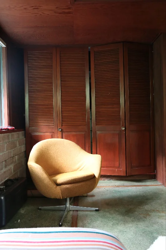 Since our move into a Mid-Century home 3 years ago, we've undergone just one major renovation:  our kitchen and dining room.  Now it's time to begin working on a few other areas that need updating, spaces like closets, bathrooms and guest rooms.  I recently tackled our children's closets.  Original to the home's 1953 construction, the closets for both bedrooms were not making use of all the available space nor accommodating all the current things kids own nowadays.  Striving to keep some uniformity throughout the house, I hired the cabinet maker who worked on our kitchen to build something similar for our children's rooms.  The final result is a refined storage area that fits our home's design and addresses the needs of our children now and well into the future.  Take a look: