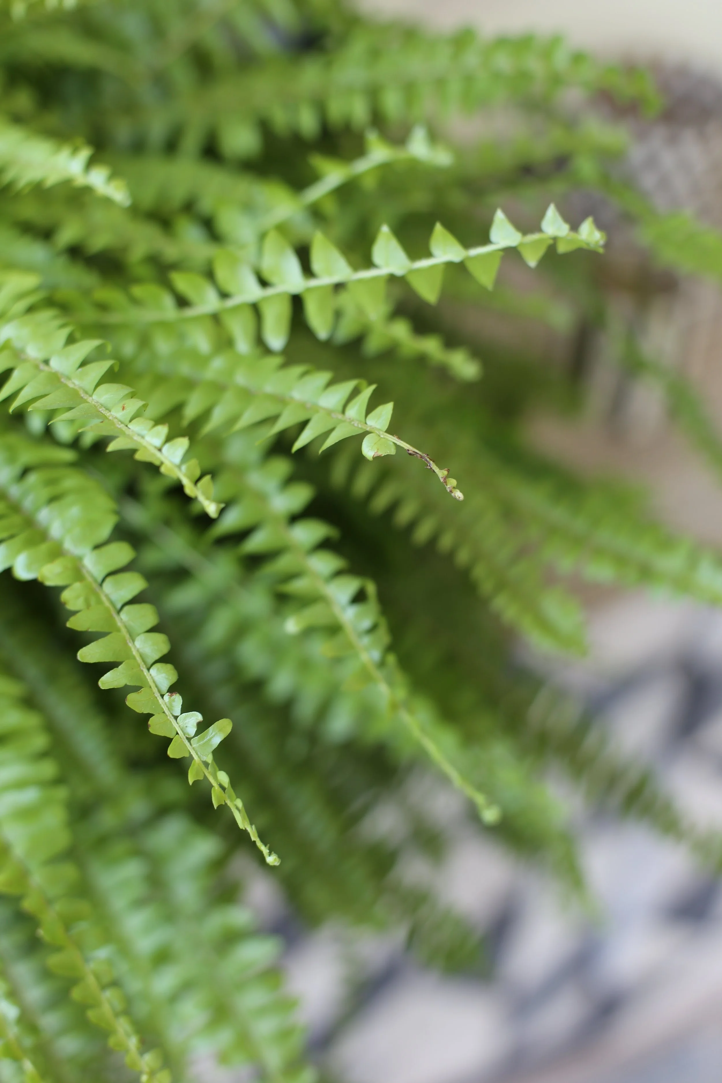 This week's Botanical Inspiration is the Boston Fern: Nephrolepis Exaltata. I often associate them with the East Coast, particularly with Boston, where you see them flanking brownstones' entrances along Commonwealth Avenue. However, when I needed a hanging plant to create privacy by a window right here in Cali, they came to mind immediately. Their dense hanging leaf pattern and vibrant color proved to be the perfect choice. As beautiful as Boston ferns are as hanging plants, they also look amazing placed on a table or a plant stand. Their elegant leaves drape over each other creating a mass of lush green texture and color. Boston Ferns love indirect, filtered light, moist soil and fairly humid conditions. Feeding them once a month will ensure they keep their vibrancy. Luckily, in California we can keep these beauties outside most of the year depending on your location. As long as the temperatures stay between 55-65 degrees your fern will remain happy and healthy.