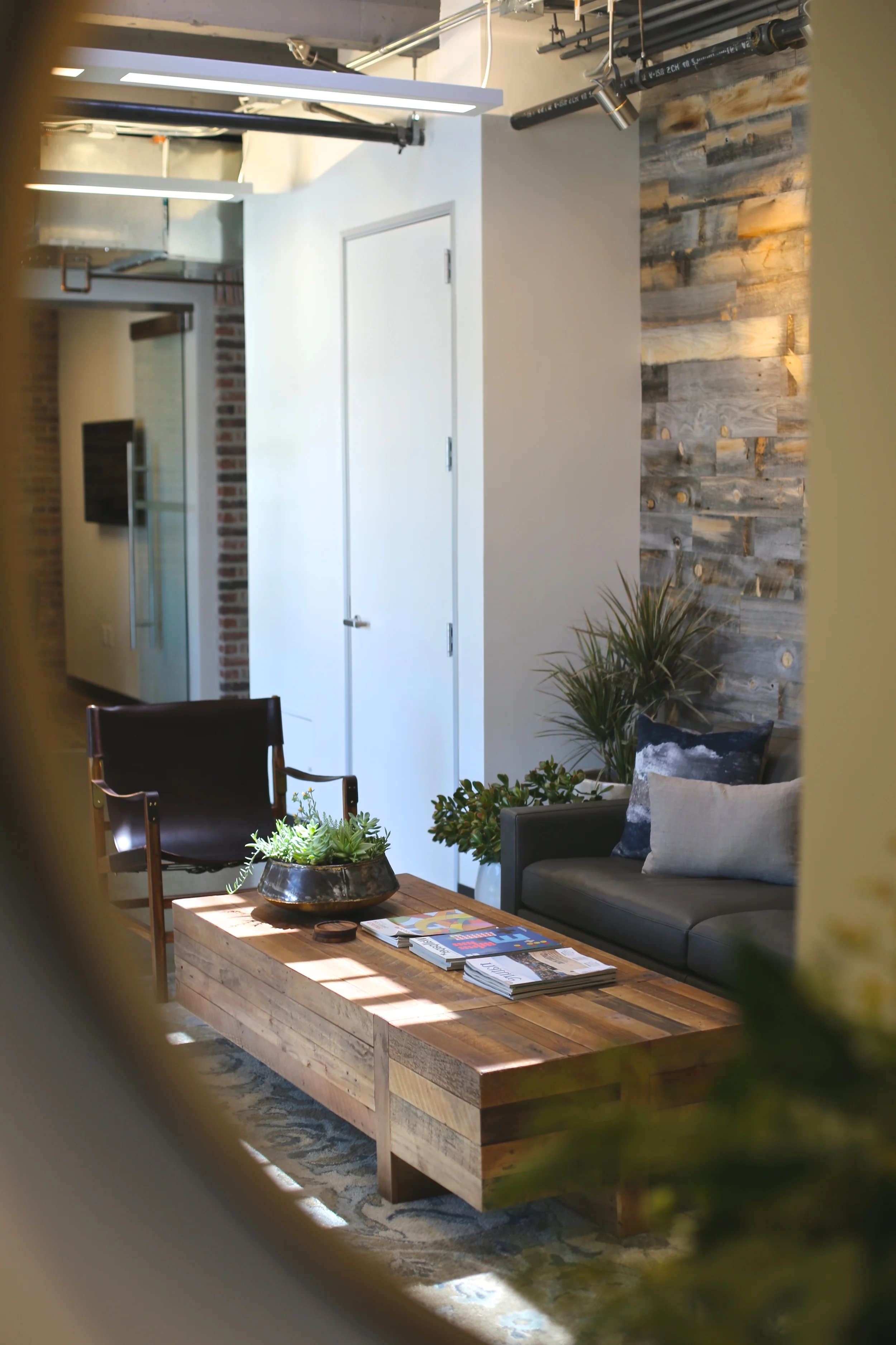 Wanting to pay homage to the area's history and California's entrepreneurial spirit, the partners wanted the space to reflect a bit of its colorful past. Careful not to go overboard with the themes, Cocoon Home used reclaimed wood, a mix of metals, steam trunks and art that reflected the era as well as modern accents and vibrant botanicals to lend the offices a contemporary feel. Take a look: