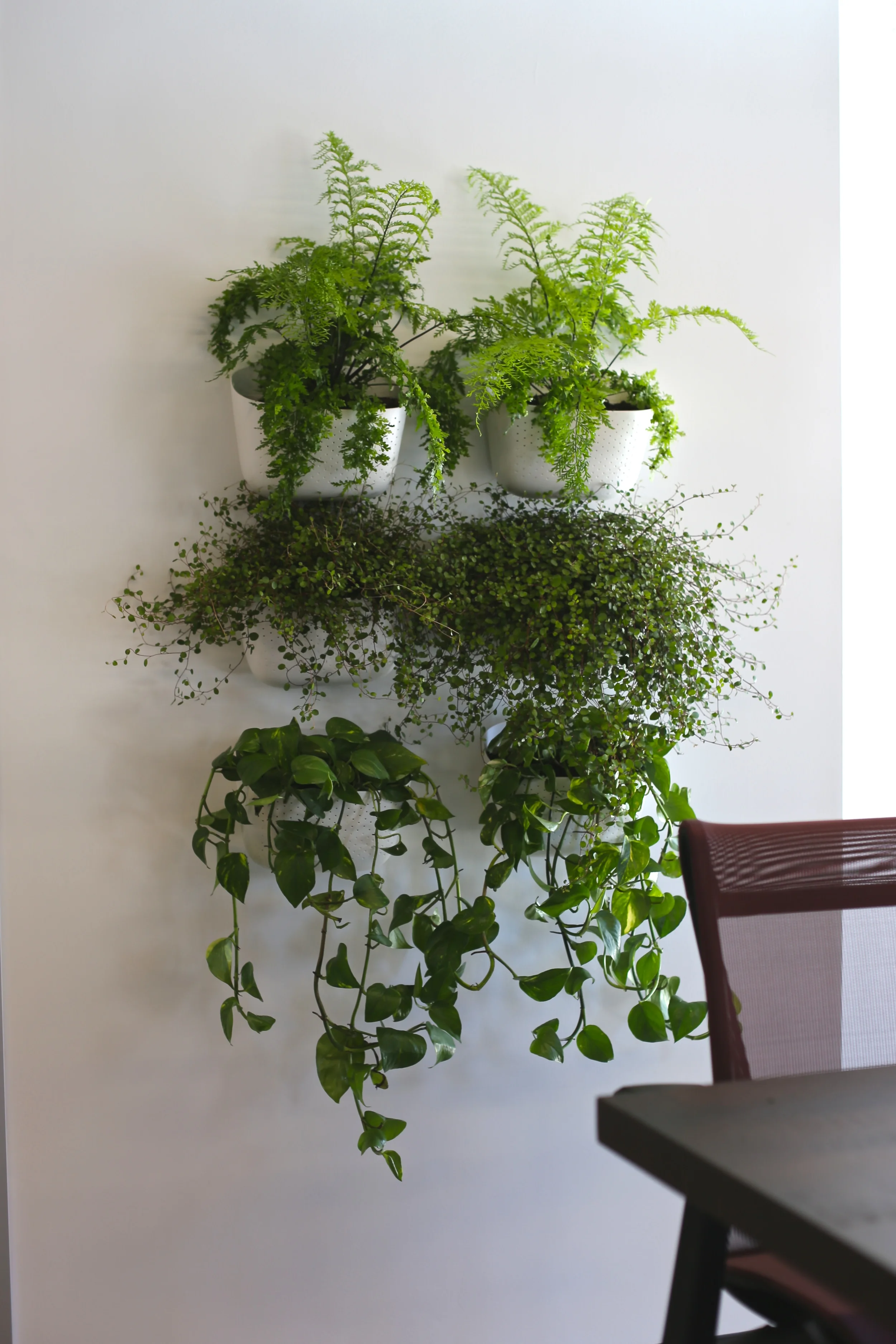 This is the first stage of Natalia's vertical garden, and she would like to thank Alex for its installation. As the plants thrive and grow, the planters will become invisible and a lush wall of shade loving plants will grace her bedroom. This project inspired future ones, so stay posted for more of Cocoon Home's botanical designs.