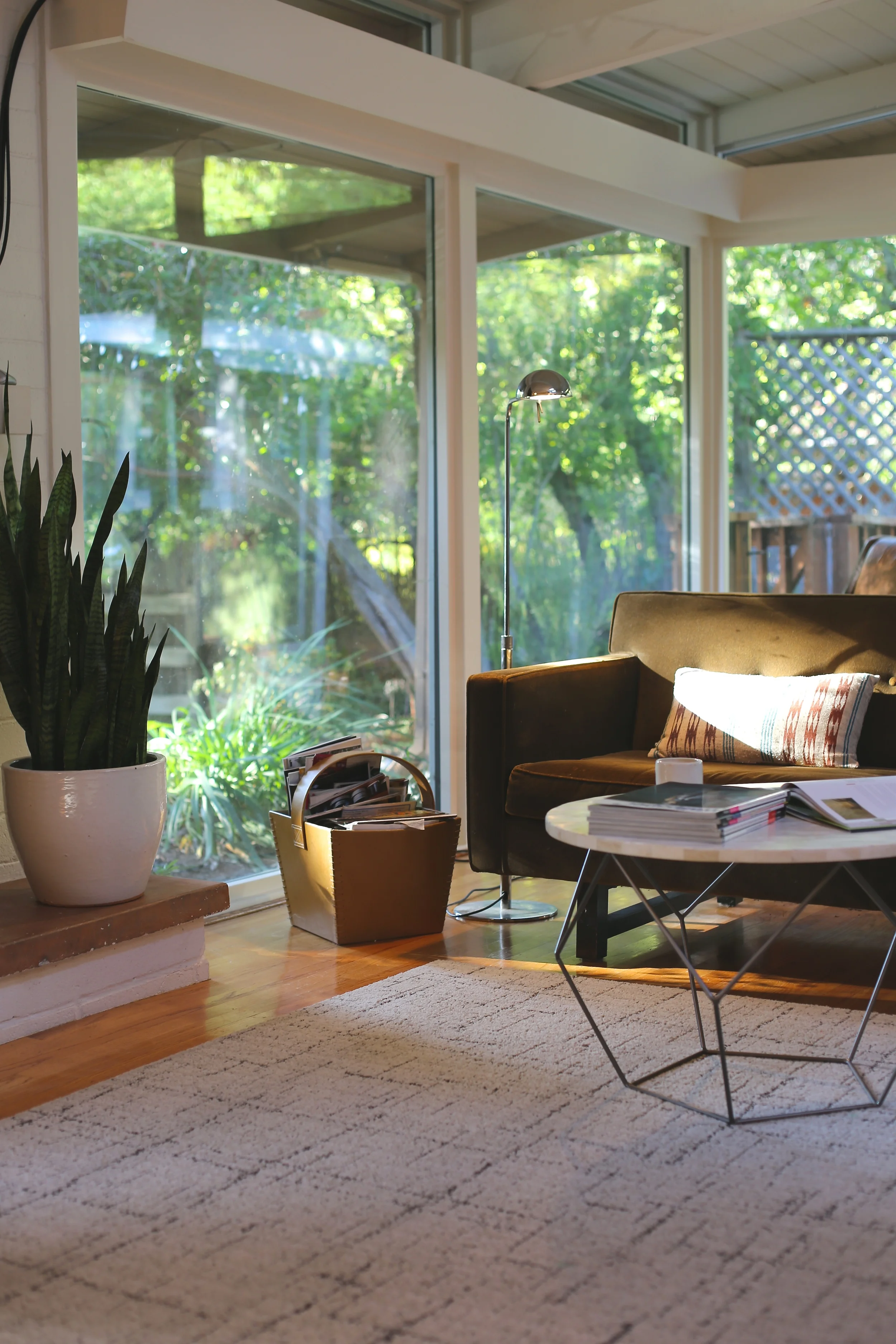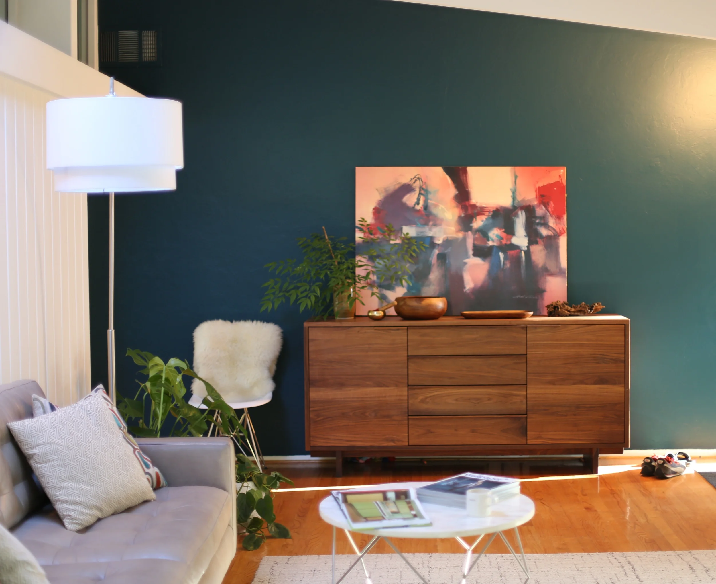For the past month or so, I've been helping a family update their Eichler home. In just a few basic steps, their light-filled space has taken on the functional needs of a family of four as well as some stylistic touches to honor the home's design. Firstly, we selected a bold [darker] color to accentuate a focus wall that extends from the entryway to the dining area. Secondly, we repositioned the existing furniture and decided what new items to purchase. Lastly, we accessorized the transformed living space with bowls, books, art, and of course, botanicals. There are still a few items on the "to do and get" list, but my clients are in control now and can proceed on their own. Take a look at the space before and after: