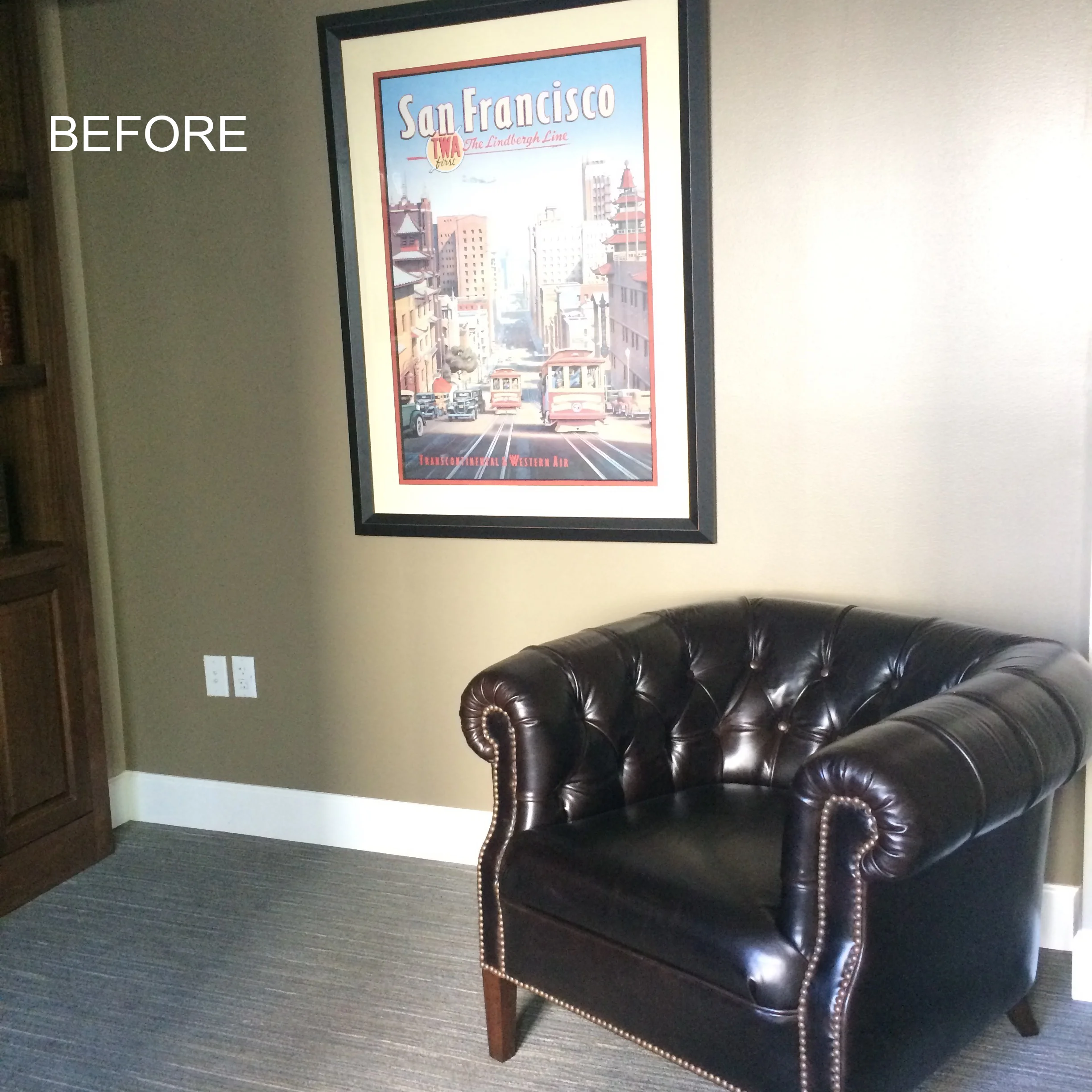 At onset, "Room Inspirations" were created for the entire space, incorporating some of the existing items and blending with new pieces to help show how the space could look and feel. We then proceeded to rearrange the furniture in order to create a better flow and to see what other items in the space needed to be added or deleted.